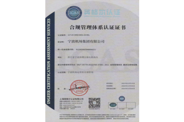 3月8日,宁波机场顺利通过合规管理体系“国内/国际”双标准年审认证。