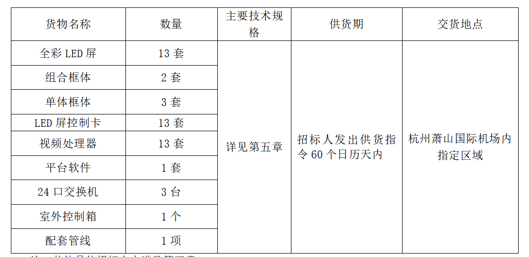 杭州萧山国际机场室外显示屏采购项目采购项目招标人为杭州萧山国际机场有限公司,招标项目资金来自自筹,出资比例为100%。该项目已具备招标条件,现对本项目进行公开招标。