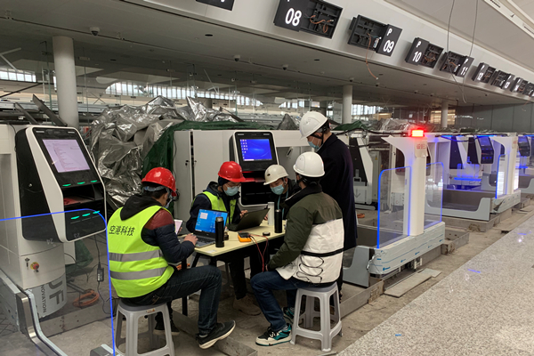 2月11日,杭州机场信导部离港系统投运小组联合三期指挥部、建设厂家在T4航站楼召开离港系统自助项目投运现场会,确认现阶段自助设备安装进度和后续调试、演练计划。