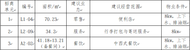 (一)本次招商共设置3个招商单元,158.82㎡。